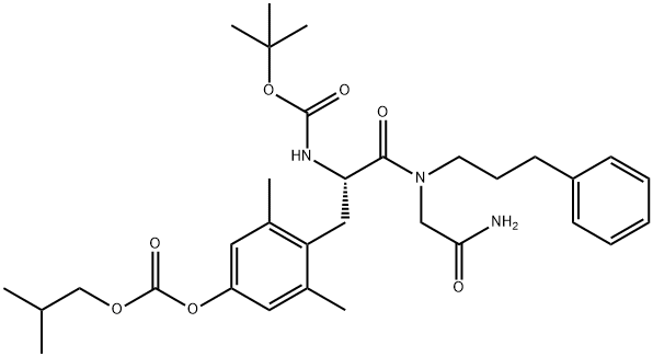 英文名称:Glycinamide, N-[(1,1-dimethylethoxy)carbonyl]-2,6-dimethyl-O-[(2-methylpropoxy)carbonyl]tyrosyl-N-(3-phenylpropyl)- (9CI)