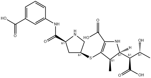Ertapenem sodium (L-749345; MK-826) 属于长效的碳青霉烯,是一种 β-内酰胺抗生素,具有广泛的抗菌谱。Ertapenem sodium 对革兰氏阳性菌和革兰氏阴性菌均有活性,包括肠杆菌科、肺炎链球菌和大多数种类的厌氧菌。