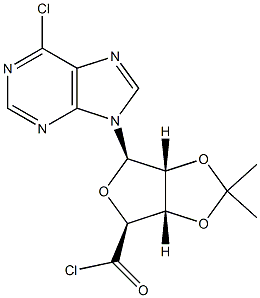 2',3'-O-异丙叉肌苷是一种医药中间体,可用于制备卡培他滨。卡培他滨(Capecitabine)是5-氟尿嘧啶的前药。该化合物本身无细胞毒性,在体内酶的作用下经3步酶解代谢为5-FU(5-氟尿嘧啶)而发挥抗肿瘤作用。取肌苷100g(0.368mol),加入400ml丙酮,在搅拌下加入40ml浓硫酸,加热至回流,待固体完全溶解后加入100g无水硫酸铜,继续回流5小时,TLC跟踪反应,待反应完毕,加入160g碳酸钠中和反应,除去无机盐,丙酮洗涤,合并滤液,减压蒸出溶剂,残渣中加入60%乙醇200ml,热溶,趁热过滤,滤液冷藏,得淡黄色晶体96g,熔点:192~196℃,收率:83.7%。