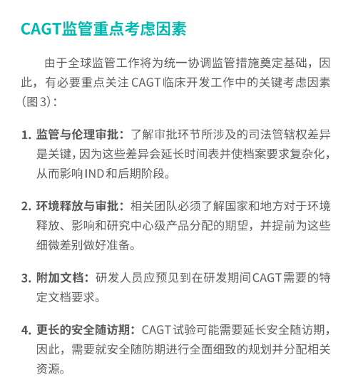 监管机构正逐步适应并为CAGT的创新做好准备。其中FDA 的监管工作最为突出,特别是为生物制品评价和研究中心(CBER)所制定的指南。