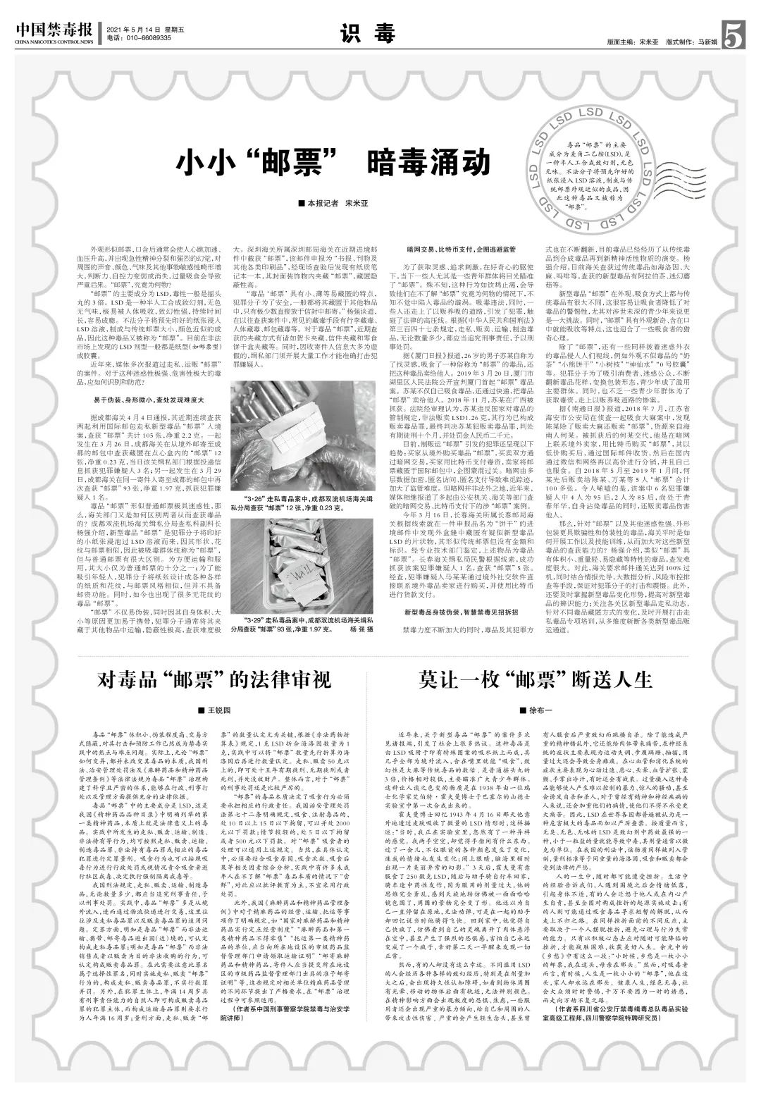 俗称“邮票”的新型毒品,外观材质为具有一定厚度的吸墨纸,所含主要毒品成分有麦角二乙胺(LSD)或苯乙胺类物质等。