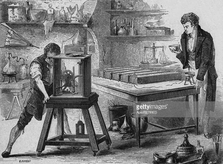 既然被称为“氧化盐酸”,那么这种气体中一定得含有氧元素吧,于是无数化学家开始冲锋陷阵,想把“氧化盐酸”中的氧元素分离出来。但是尽管试了很多方法,比如通过灼热的木炭,与干燥氯化银、硼酸酐、木炭共热,都没有分离出氧气。这时候我们的电解狂魔戴维坐不住了,他又拿出了他的拿手好戏:电流。他把“氧化盐酸”放入电流中电解,刚开始没有发生明显变化,只是电极变暗了,电解几小时后,居然发生了剧烈的爆炸!于是他换个思路,使用“氧化盐酸”与其他金属化合,再电解形成的化合物,最终……他还是没有用电流将里面的氧元素分离出来。