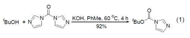 1-(叔丁氧基碳酰)咪唑(Boc-Im) (式1)[1]在有机合成中是一个优秀的叔丁氧基碳酰转移试剂,