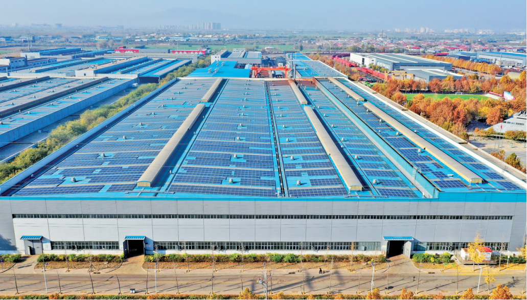 河北省石家庄市栾城区装备制造产业园在企业厂房屋顶安装太阳能光伏发电板,