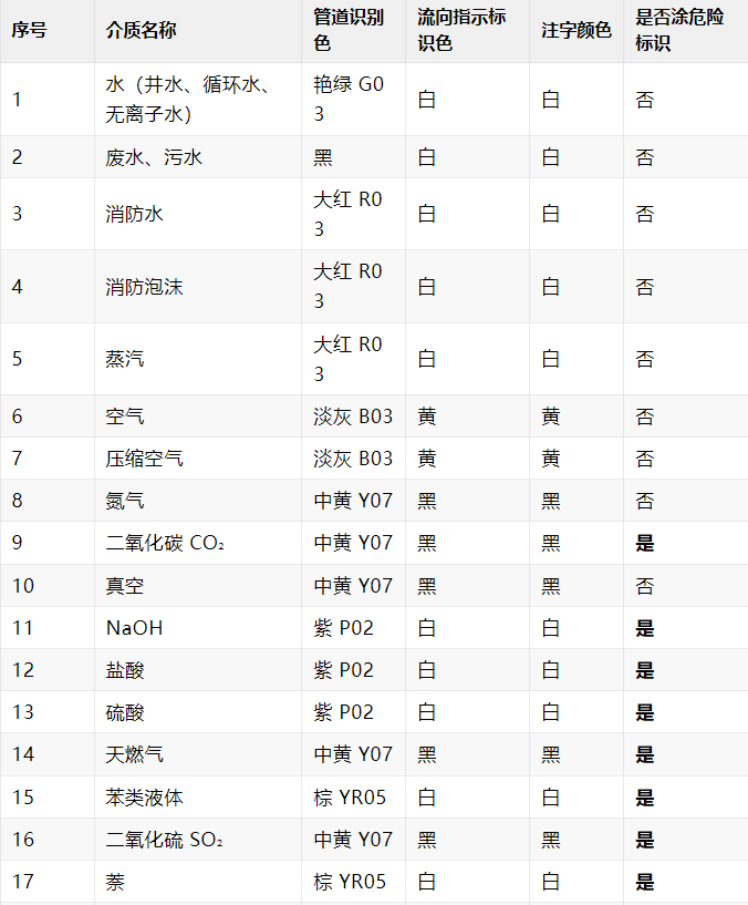 - 不锈钢/有色金属管/玻璃管/塑料管/保温外皮:不涂色,需做标识