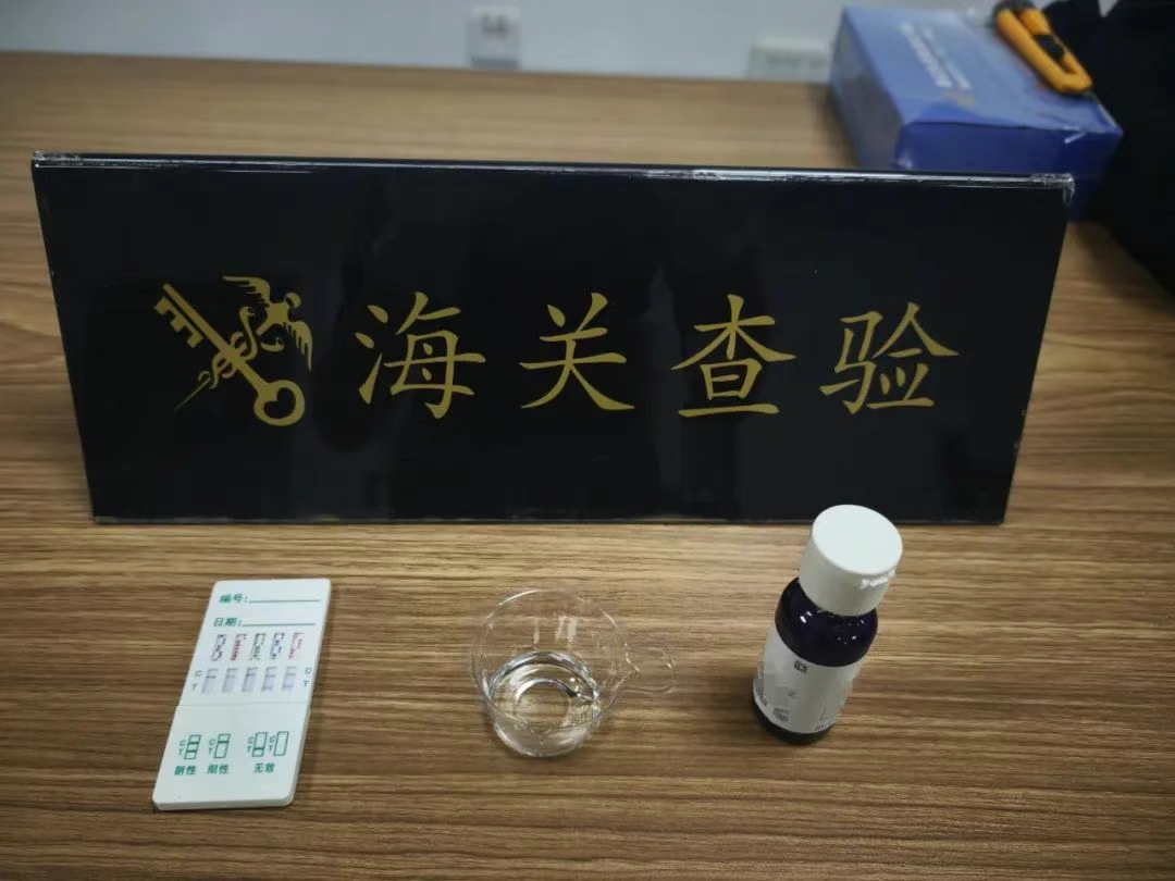 现场关员对该瓶“精华液”进行毒品快速检测,检测结果呈吗啡、甲基安非他明、氯胺酮阳性,其中甲基安非他明为冰毒有效成分。目前,相关物品经专业机构鉴定确认,并提取冰毒净重9.87克,该案件已移交海关缉私部门处置。
