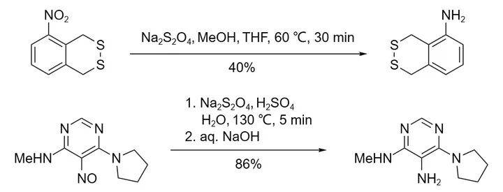 连二亚硫酸钠也可以用来将硝基和亚硝基化合物还原为胺。