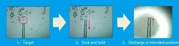 微量移液器通常由超薄玻璃毛细管制成,并且与抽吸及分配装置相连。细胞样品一般以悬浮液的形式存在于培养皿或孔板中。