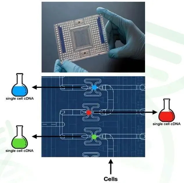 Fluidigm C1芯片类似于一个微缩的实验室,当单细胞悬液被导入后,单个细胞会被精准地分配到各自独立的微小腔室中。每张芯片设有96个这样的腔室,因此能够同时对最多96个细胞进行平行且独立的裂解、反转录以及PCR扩增操作。