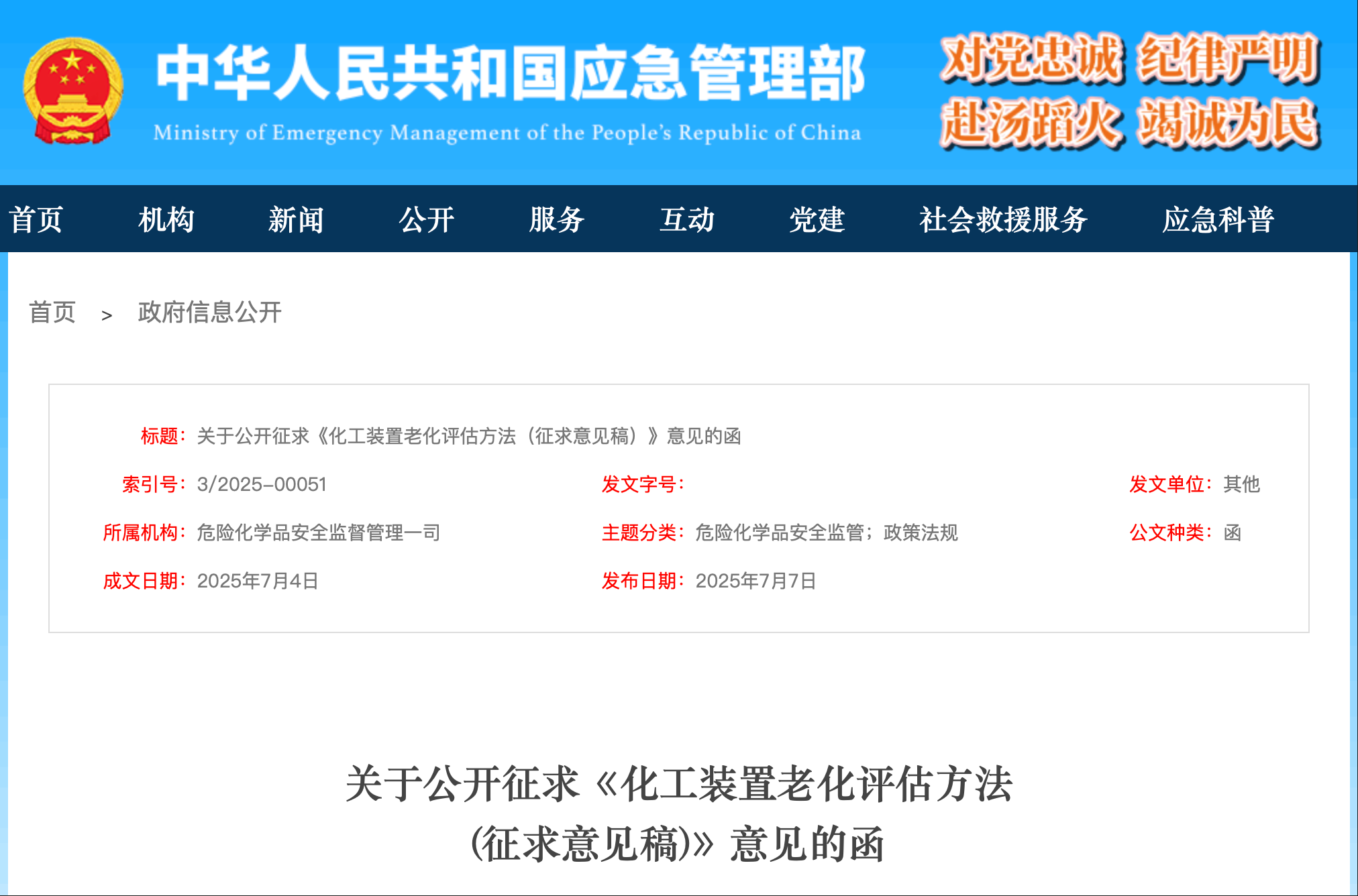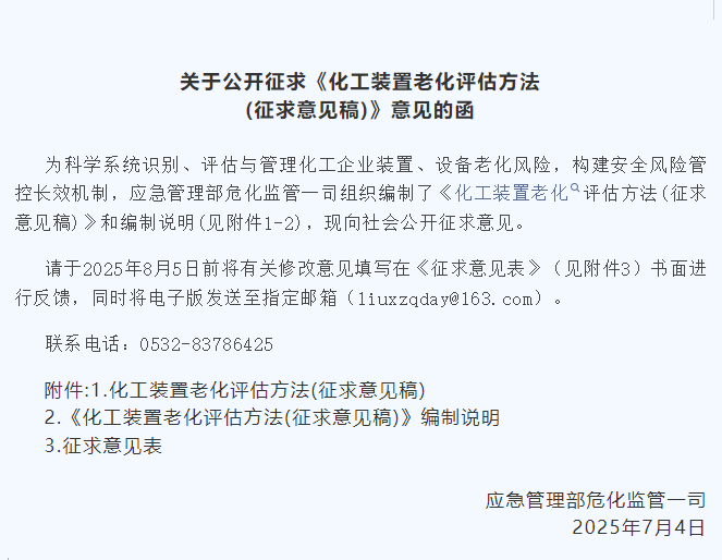 国家行动!化工装置老化评估方法,应急管理部征求意见!