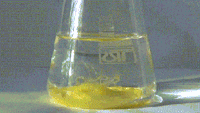 录制者:ChemToddler 危险:高。溴有挥发性和腐蚀性,吸入有毒,需防护措施。反应剧烈且有喷溅,请务必从少量开始!