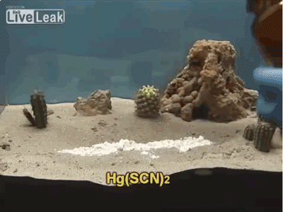 花絮:硫氰酸汞于1821年由德国人合成,之后不久它燃烧的特殊现象就被发现。很长一段时间里作为一种焰火在德国出售,但是最终因为多例小孩误食而中毒的事故被禁止。