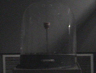 原理:铯是活泼的碱金属,和水爆炸式反应生成氢气。高速摄影需要极强的光,光照产生的高温使得铯无法保持固态,因此实验采用安瓿来装液态铯。小锤击碎安瓿瞬间,铯液滴倾泻而出,在空中就和水蒸气、氧气反应留下尾迹,大块入水后产生爆炸式反应。