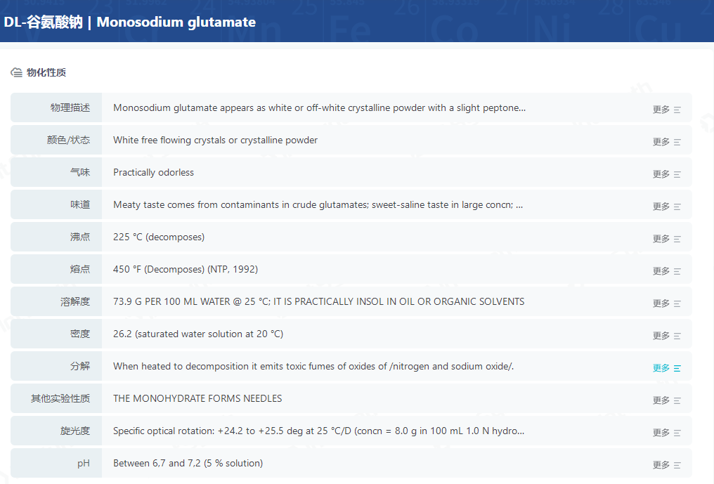 图3:谷氨酸钠物化性质图