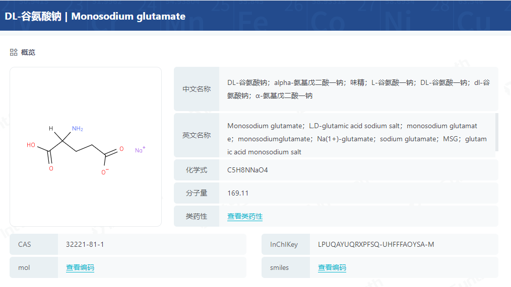图2:谷氨酸钠分子信息图