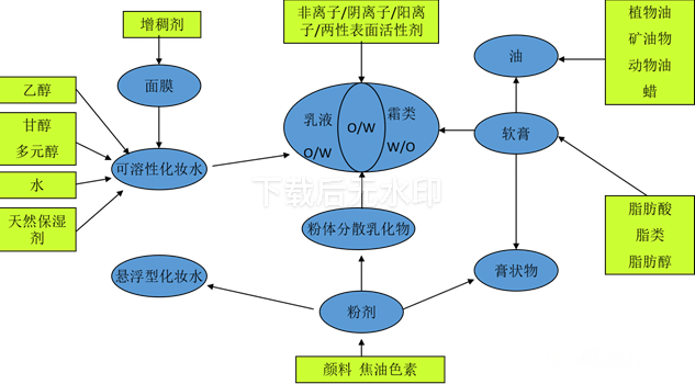 化妆品剂型与基质和原料的物理化学性质的关系图