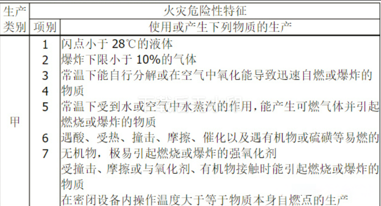 甲类:闪点<28的液体;爆炸下限<10%的气体;